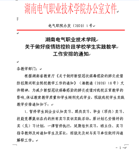 【战疫时刻】湖南电气职业技术学院关于疫情防控阶段学校学生实践教学工作安排的通知