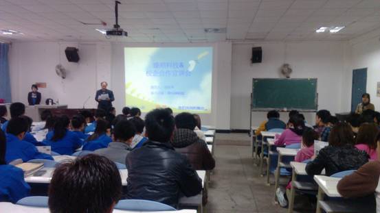 随后,臻鼎科技控股股份有限公司人资部课长刘春华在教学楼B101为11级自动化专业的同学们作了一次精彩的公司情况宣讲。分别从公司的概况、员工薪酬福利、文娱活动、学习成长、职业发展五方面介绍公司,使同学们对该公司有比较客观的认识。臻鼎科技控股股份有限公司成立于2006年6月,主要生产印刷电路板。研发中心设立于台湾,制造基地是在大陆的广东深圳、江苏淮安、河北秦皇岛及辽宁营口。服务据点横跨台湾、大陆、日本、印度、美国、新加坡、芬兰等地,遍布欧美亚三大洲,全球员工人数为25,000余名。主要客户为:Apple、Nokia、Motorola、Sony、Dell等。