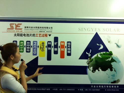 工作人员细致讲解太阳能电池片的工艺过程