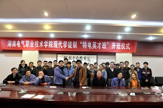 1月11日下午4点,我院与湘电集团特电事业部合作成立的现代学徒制“特电英才班”开班仪式在新能源大楼第四会议室隆重举行。集团公司人力资源部副部长杜伟强、特电事业部副总经理左志远以及学院副院长路成志、周哲民等领导参加了开班仪式。仪式由电气与信息工程系赵文才主任主持。